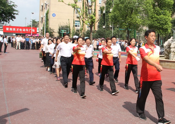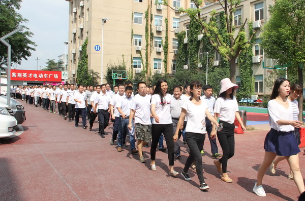 "不忘初心 牢記使命""健康中國 你我同行",公司南院紅綢高懸,西側球場(chǎng)士氣盎然。上午9點(diǎn)50分,在公司黨委副書(shū)記、紀委書(shū)記、工會(huì )主席王寶成發(fā)令聲下,"全民健身日"健步走活動(dòng)正式開(kāi)始。公司近一千三百名員工依次列隊,在健步走教練的指導帶領(lǐng)下,伴隨歡快律動(dòng)的音樂(lè ),由公司辦公區西籃球場(chǎng)起,依次走過(guò)東籃球場(chǎng)、博士樓、錦繡花園酒店、老辦公樓,再回到西球場(chǎng),環(huán)繞三周。三伏天的酷熱沒(méi)有阻止全員參與健身的熱情,工程院作為此次健身走的首發(fā)隊伍,著(zhù)裝統一,口號響亮,積極宣揚公司基本經(jīng)驗,展現出工程設計院良好的精神面貌;公司副總經(jīng)理牛富敏也帶領(lǐng)總承包事業(yè)部員工昂首挺胸,闊步向前。平日寧靜的辦公區內,此時(shí)隊伍浩蕩,精神昂揚,揮灑著(zhù)夏日蓬勃的力量。