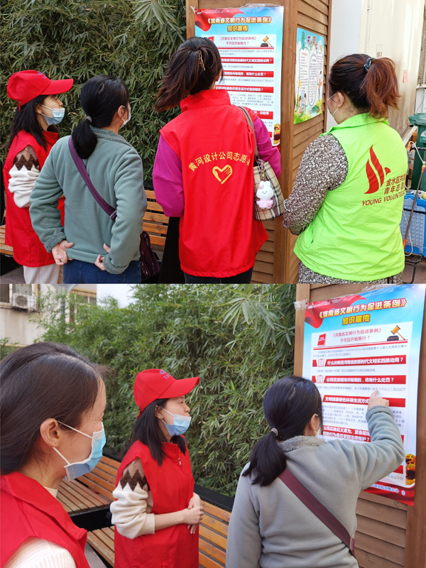 為積極踐行社會(huì )主義核心價(jià)值觀(guān)、發(fā)揚新時(shí)代雷鋒精神、貫徹落實(shí)2022年"河南省新時(shí)代文明實(shí)踐推動(dòng)周"主題活動(dòng)要求,公司團委聯(lián)合東里路社區新時(shí)代文明實(shí)踐站于3月4日至5日組織開(kāi)展了"學(xué)習雷鋒精神 推動(dòng)文明實(shí)踐"系列志愿服務(wù)活動(dòng)--"學(xué)文明條例"、"守社會(huì )秩序"、"學(xué)雷鋒我行動(dòng)"等多個(gè)文明實(shí)踐活動(dòng),來(lái)自規劃院的近20名青年志愿者參加活動(dòng)。